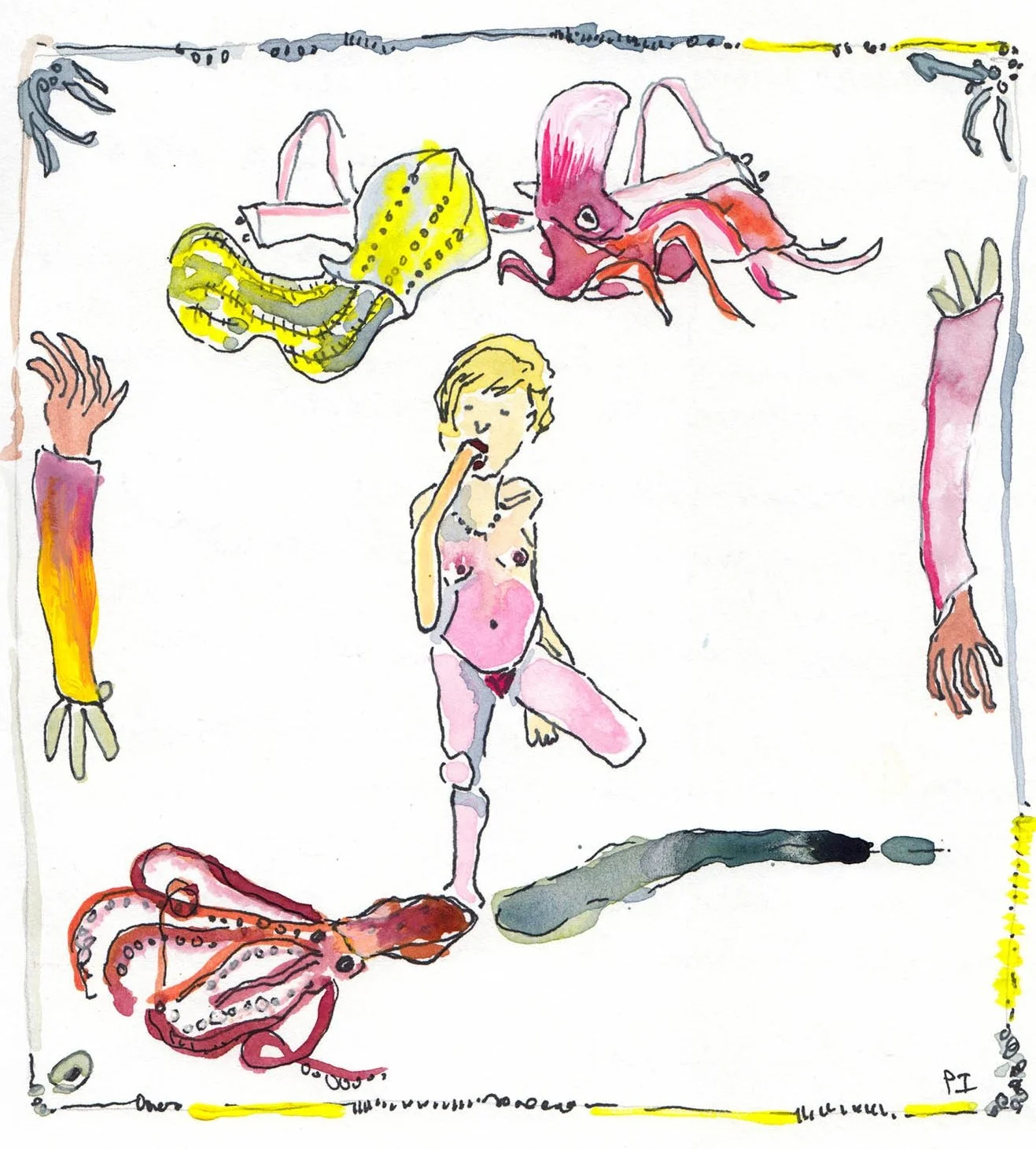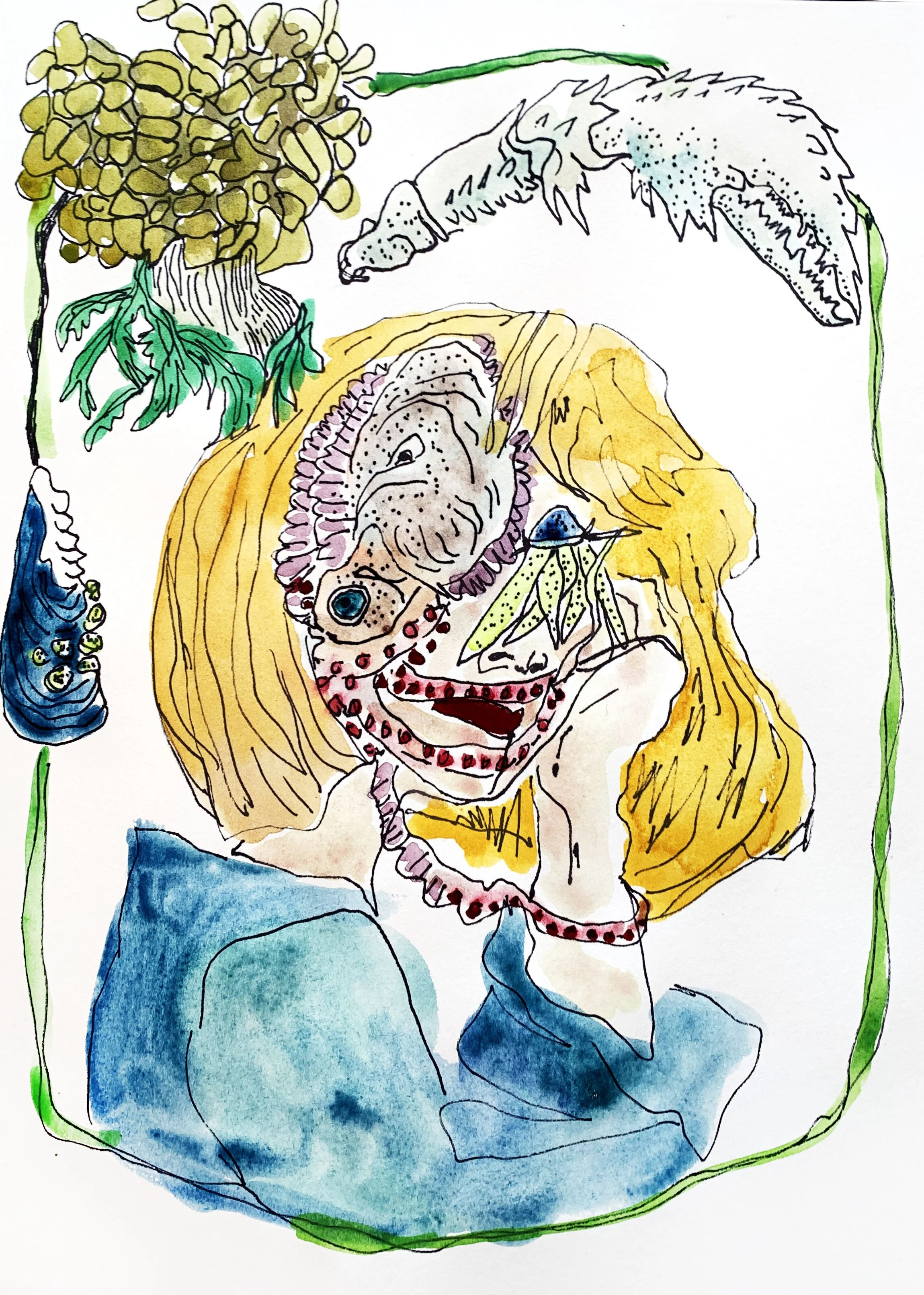 Drawings to discover where I end and others begin; what the shifting selves are; and "me" in relation to the world and its critters.